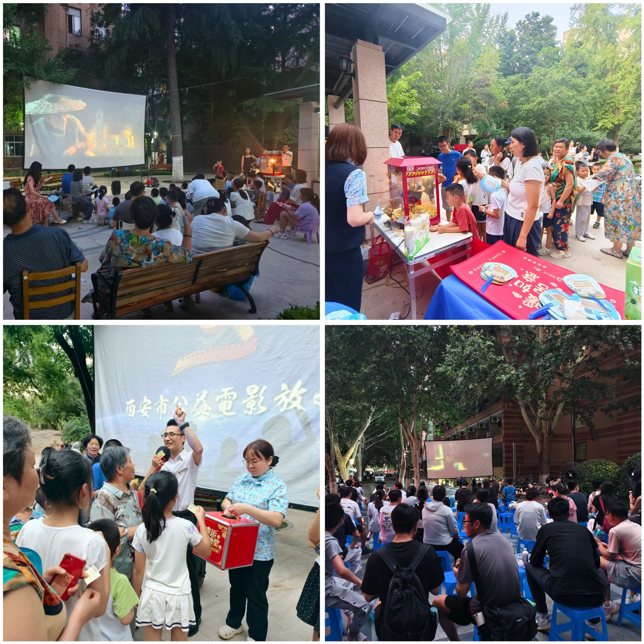 为丰富社区居民夏日文化生活,营造和谐欢乐氛围,社区居委会于7月14日、15日晚,联合校学生工作部(处)及民生银行雁塔路支行,在南北院开展“凉夏观影夜”系列活动。两场活动共吸引百余名师生及居民参与。