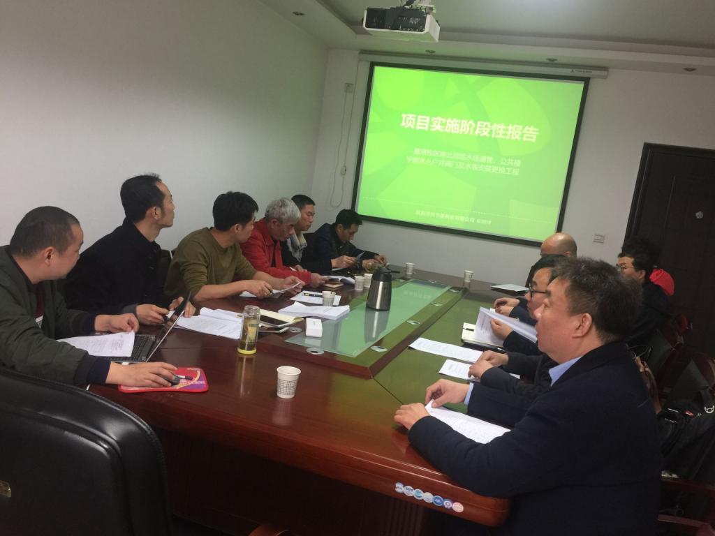 会议分为两个阶段。第一阶段,张龙介绍本次会议召开的意义及目的。随后负责学生公寓洗漱水回用工程项目施工的江苏清泉单位负责人汇报项目进度、现场待确定方案及节能效果。第二阶段,陕西乔兴节能科技有限公司负责人就南北院给水连通管阀门及水表安装项目的的安装进度,以及施工存在问题、水平衡效果及后续节水措施做了详细的汇报。会议期间各方对建设施工存在问题及方案调整进行了讨论与确定,并明确了节能工程项目的时间、节点及人员落实情况,推进了节能改造工程项目的开展。