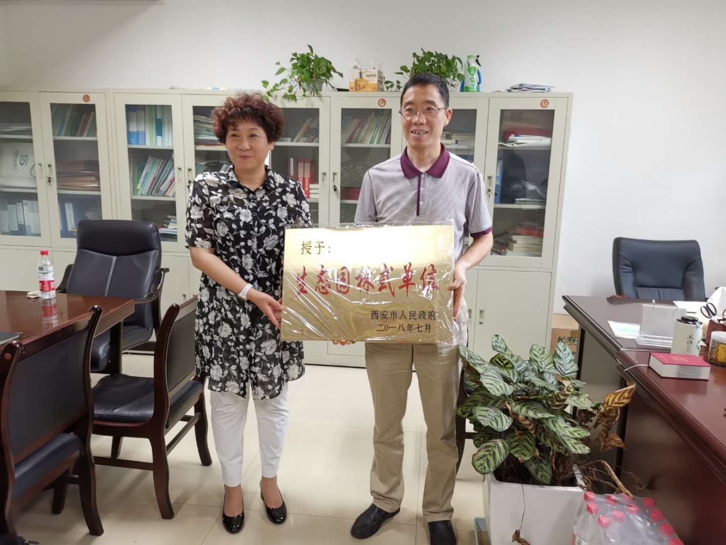 6月20日上午,西安市碑林区城市管理局赵红平局长一行莅临我校交流指导,并向我校授予“2018年度西安市生态园林城市单位”称号。