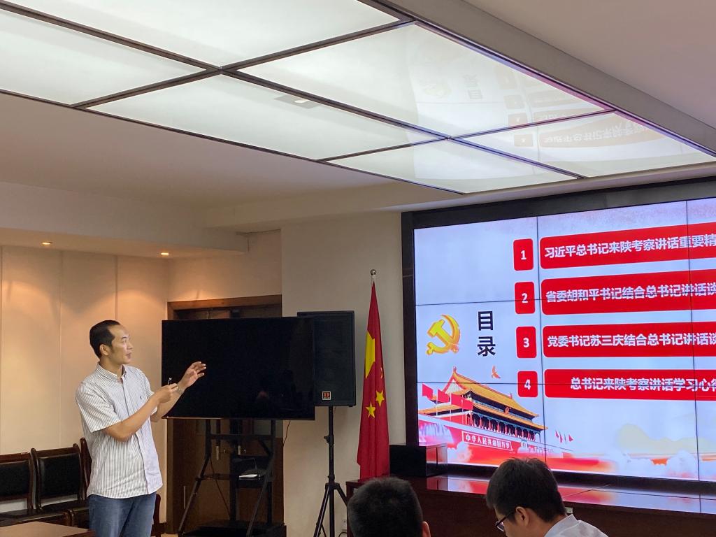 其次,党支部书记张龙向大家传达了习近平总书记来陕讲话的重要精神,结合陕西实际,从五个方面贯彻落实工作要求。并结合我校现状谈了自己的四点体会:提高政治站位;解放思想、实事求是;精益求精,服务至上;“西迁精神”,争做建大的老花工。