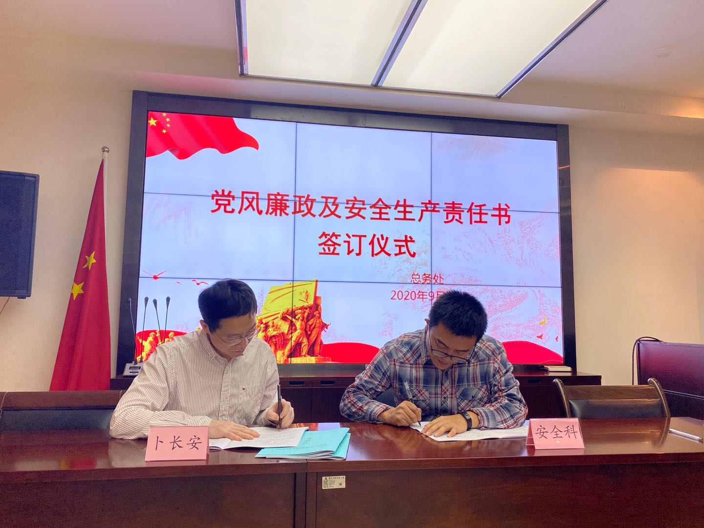 会上,总务处处长与各科长科室签订党风廉政建设,安全生产责任书。