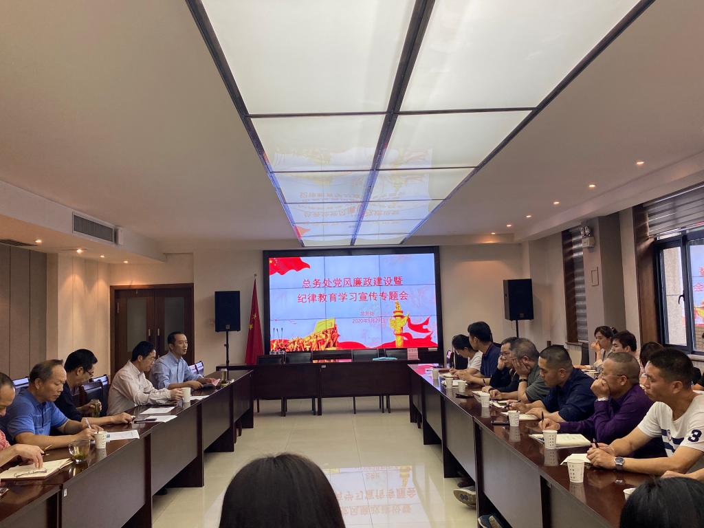 9月29日下午,总务处在行政楼负一层会议室召开党风廉政建设暨纪律教育学习宣传专题会。总务处领导班子成员、各科室班组长以上党员及重点岗位相关人员共33人参加了本次会议,会议由总务处党支部书记张龙主持。