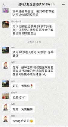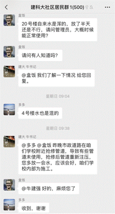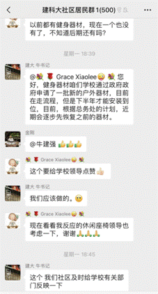 2021年5月7日,建科大社区积极转变工作思路,通过建立“社区居民微信群”,使社区居民能轻松获取社区建设和服务方面的最新资讯,足不出户就能了解各项事务的办事流程、反应问题或寻求帮助。社区工作人员就居民提出的各种问题进行认真解答,及时进行反馈,从而构建起社区与居民之间方便、快捷的信息沟通渠道。