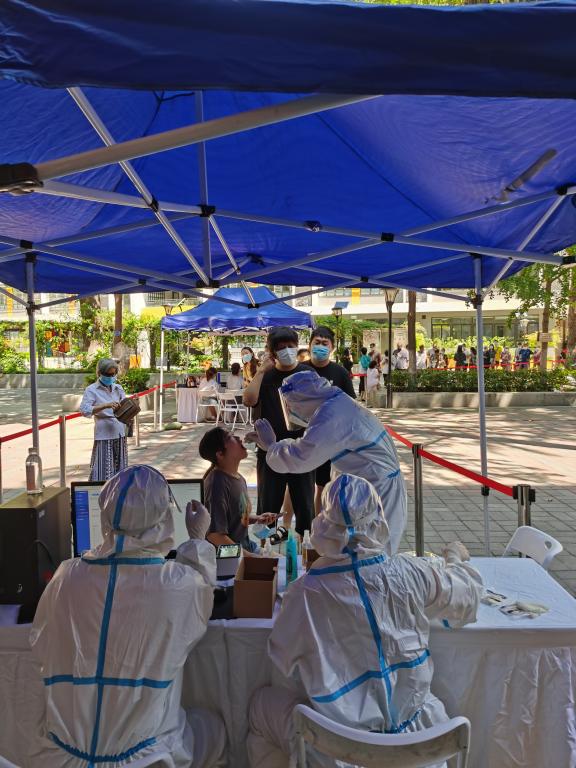 8月6日,在文艺路街道的多方协助下,各类物资均安排到位,早上7:00,“建科大社区全员核酸检测”按照既定方案准时开展,社区居民按照楼宇编号依次进入检测区域进行检测;暑期留校生于8月7日在北院西大门广场完成检测。在多部门共同协作下,建科大社区全员核酸检测于8月8日晚22:00结束。本次检测不仅完成了全部辖区居民的核酸检测任务,还面向社会对部分周边居民进行检测,南北两院共计检测11062人,其中建科大南院完成6839人、北院完成4223人,核酸检测过程平稳有效,获得了学校领导及文艺路街道的充分肯定。为碑林区疫情防控工作做出了一定的贡献。