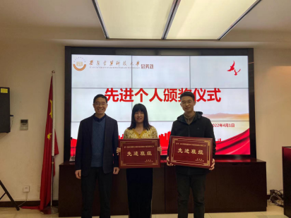 副处长王运思宣读2021年度先进班组及优秀个人,并予以表彰。先进个人代表桂晓刚、张康两位同志分别上台发言,结合自身工作经历、收获以及今后努力的方向等与大家做了分享。