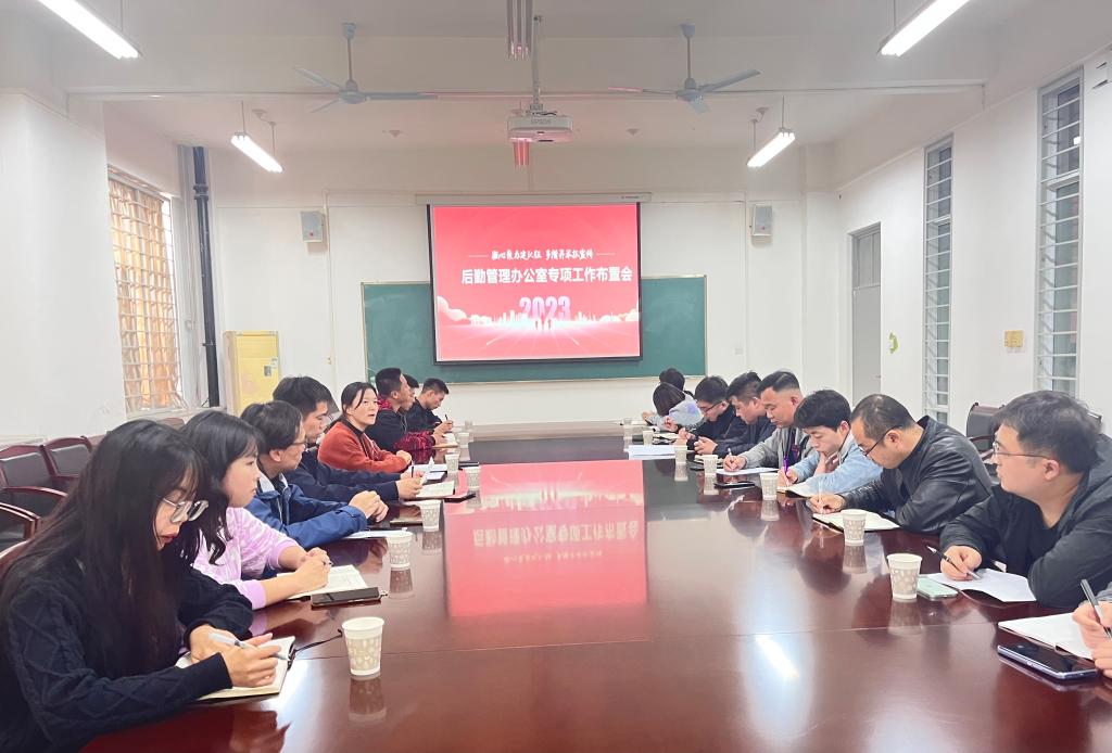 为推进科室工作更好更快开展,落实落细各项重要工作,3月28日下午2:00,后勤管理办公室在学府城7-209召开了2023年专项工作布置会,总务处副处长杜玉峰出席会议,后勤管理办公室主任赵欣悦主持会议,科室全体人员参会。