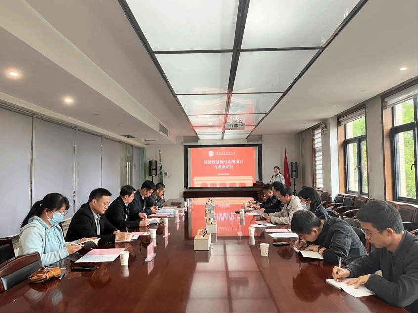 总务处后勤管理办公室负责人从供电系统现状、项目实施必要性、项目建设内容、项目预算及实施阶段、未来展望五个方面详细汇报了校园智慧供电系统方案。与会人员认真审议了项目方案,各抒己见,就校园智慧供电项目方案优化、实施细则等方面给出了具体的意见和建议。