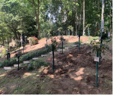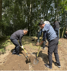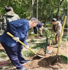 “种一颗树苗,添一抹新绿,播一分希望”,在植树现场,总务处党支部与后勤党总支成员分工协作、配合默契、齐心协力,扛着铁锹、提着水桶,挖坑填土、扶苗浇水,在人工湖假山周边共栽下月季树、月季球等50余株树苗。最后,大家为自己树苗挂上专属标牌。