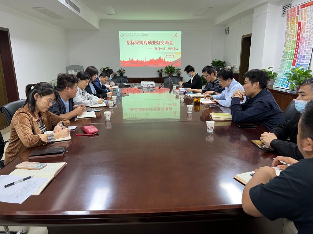 6月份即将进入暑期修缮改造项目集中采购高峰,为提高招采效率,推进修缮项目顺利实施,5月26日下午,总务处党支部在行政楼组织召开招标采购专项业务交流会。会议邀请了招标采购办公室副主任魏井福、工程招标科科长胡明进行招采业务专项培训交流,副处长程永阳、王运思、杜玉峰、各科室负责人及相关业务人员参会。会议由王运思主持。