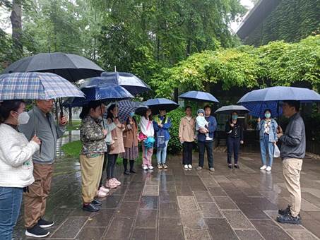 天空阴雨绵绵,党徽熠熠生辉。活动伊始,社区主任牛建强讲话,他表示:这是“社区+”党员志愿者服务队成立以来首次活动,希望大家以此次参观活动为契机,凝心聚力,共建美好社区。