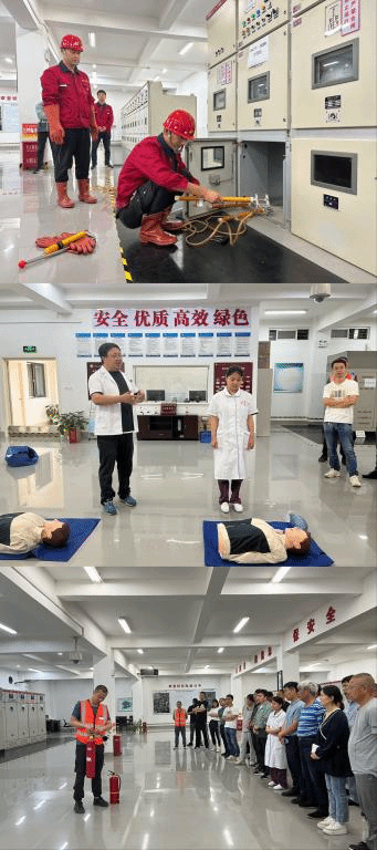 为提升职工安全意识和应急避险能力,筑牢校园安全防线,总务处联合校医院及保卫处以全国第22个“安全生产月”为契机,紧紧围绕“人人讲安全、个个会应急”主题,结合学校关于“安全生产月”活动的文件精神,于6月14日下午在草堂校区中心配电室展开了校园供电安全应急演练,两校区供电相关人员及部分物业人员参加本次演练。