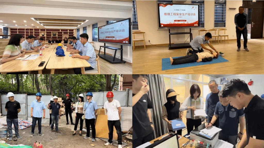 此次活动分两个阶段进行,第一阶段,为响应今年“安全生产月”活动主题—“人人讲安全、个个会应急”,修缮科王嵩和李明亮分别进行了施工现场触电、火灾的应急处置措施,以及汛期溺水后自救和赴救技能,并邀请参会人员现场模拟演练;同时,为提高校园修缮工程管理人员应急准备和响应能力,合理、有序、高效地应对紧急情况和处置突发事故,现场人员开展修缮工程突发事故应急处置桌面演练。第二阶段,修缮科与施工单位前往施工现场进行特种作业专项安全检查,排查安全隐患,并提出整改要求。