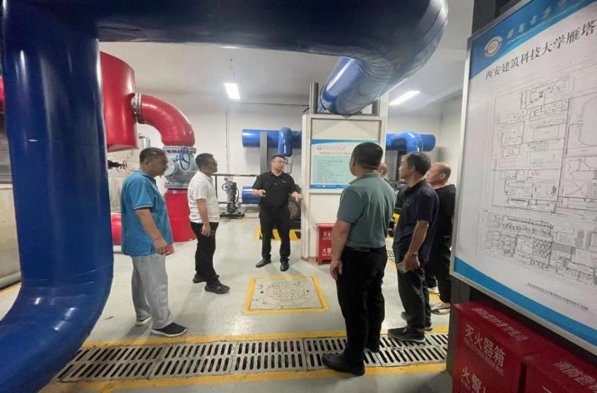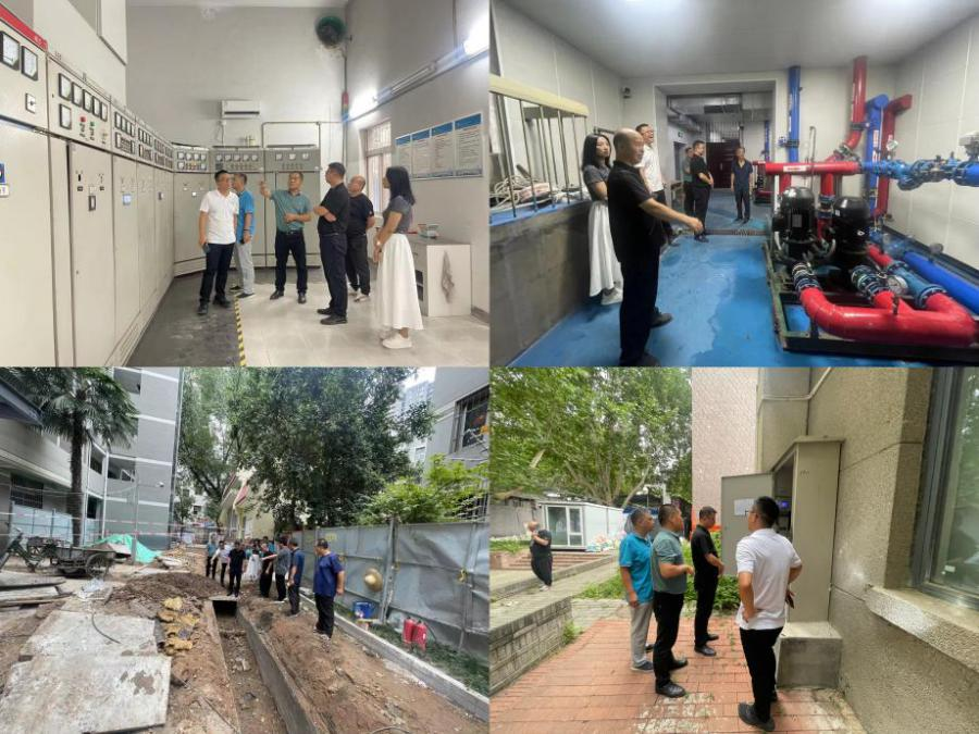 为确保开学后水电安全供应,维修项目按期保质完成。8月23日上午,总务处处长闫清波、副处长程永阳带队对雁塔校区水电供应情况和维修改造项目进行安全大检查,动力科相关人员陪同检查。