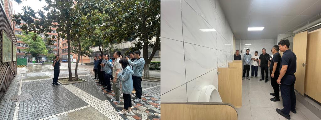 首先,参观采访人员前往3C洗漱水回用系统现场了解洗漱水回用现实案例,动力科负责人向大家详细介绍了该系统建立的背景意义、建设历程及节水效益,参观人员详细了解了系统的运行流程和运行效果。随后,大家参观了楼宇内免冲洗小便器,了解安装模式和节水效果。
