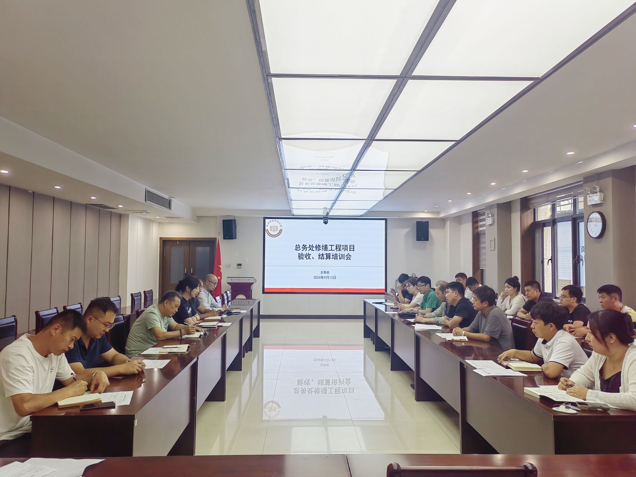 2024年暑期修缮项目部分项目已完工,根据财务处每年付款时间节点要求,为顺利推进项目后续验收和结算工作,总务处修缮科于9月13日下午组织雁塔校区修缮工程项目验收、结算培训会。修缮科全体人员及施工单位参加会议,会议由修缮科科长吉华主持。