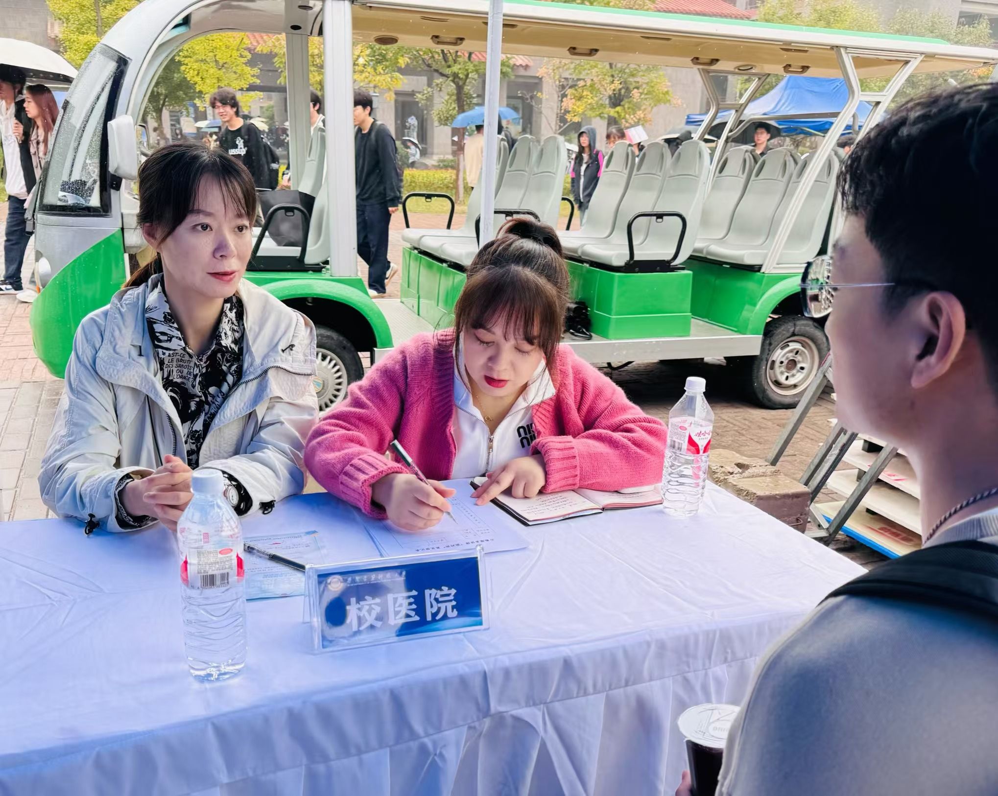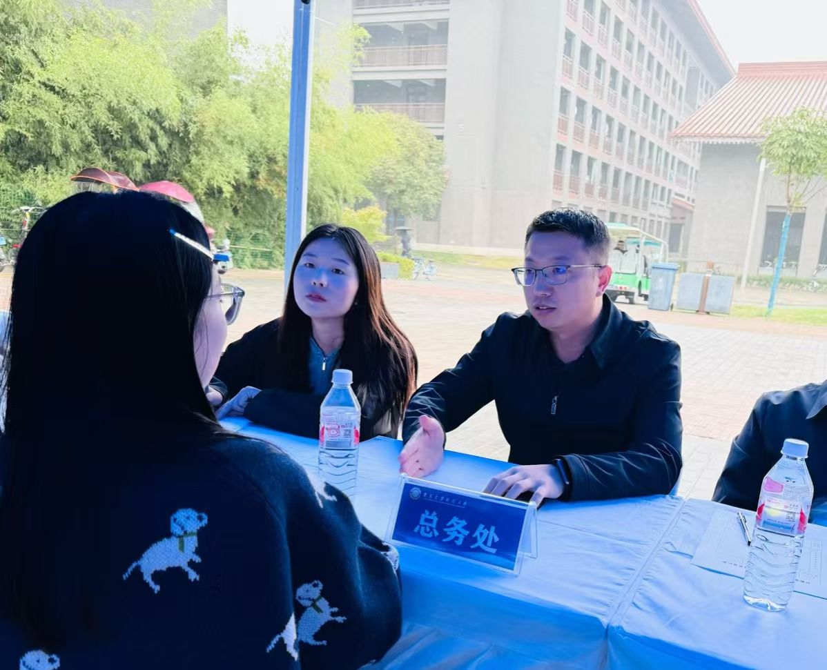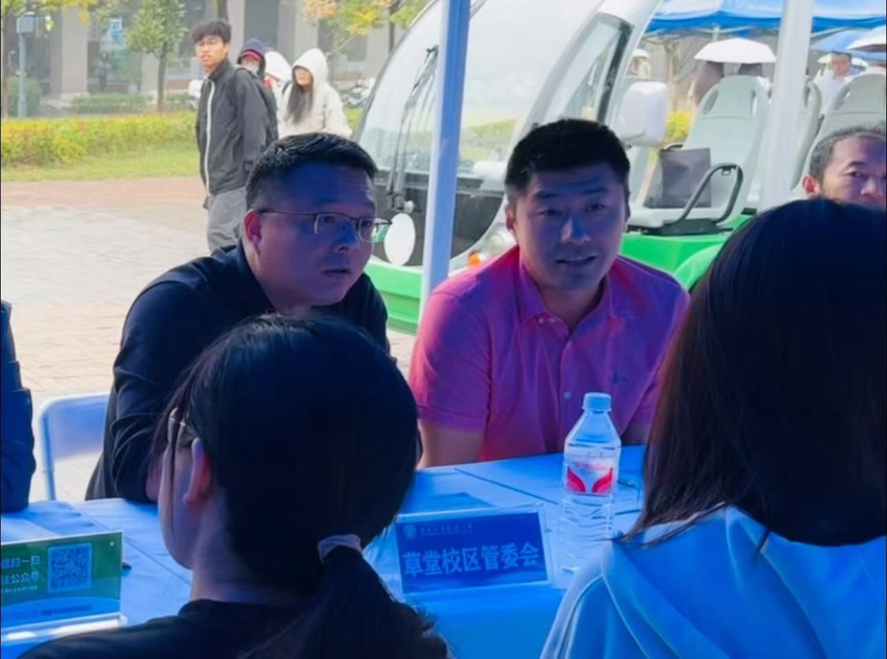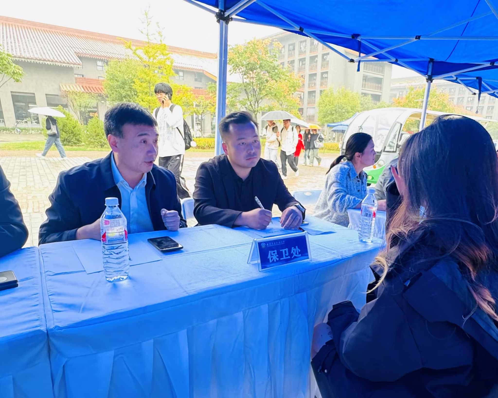 10月17日中午,总务处联合相关部门在草堂校区紫阁书院食堂广场开展“沟通零距离,服务无止境”——后勤服务保障“面对面”活动。校党委常委、副校长刘晓武,总务处,草堂校区管委会办公室,网信处,保卫处,后勤服务中心,校医院等部门负责人参加。