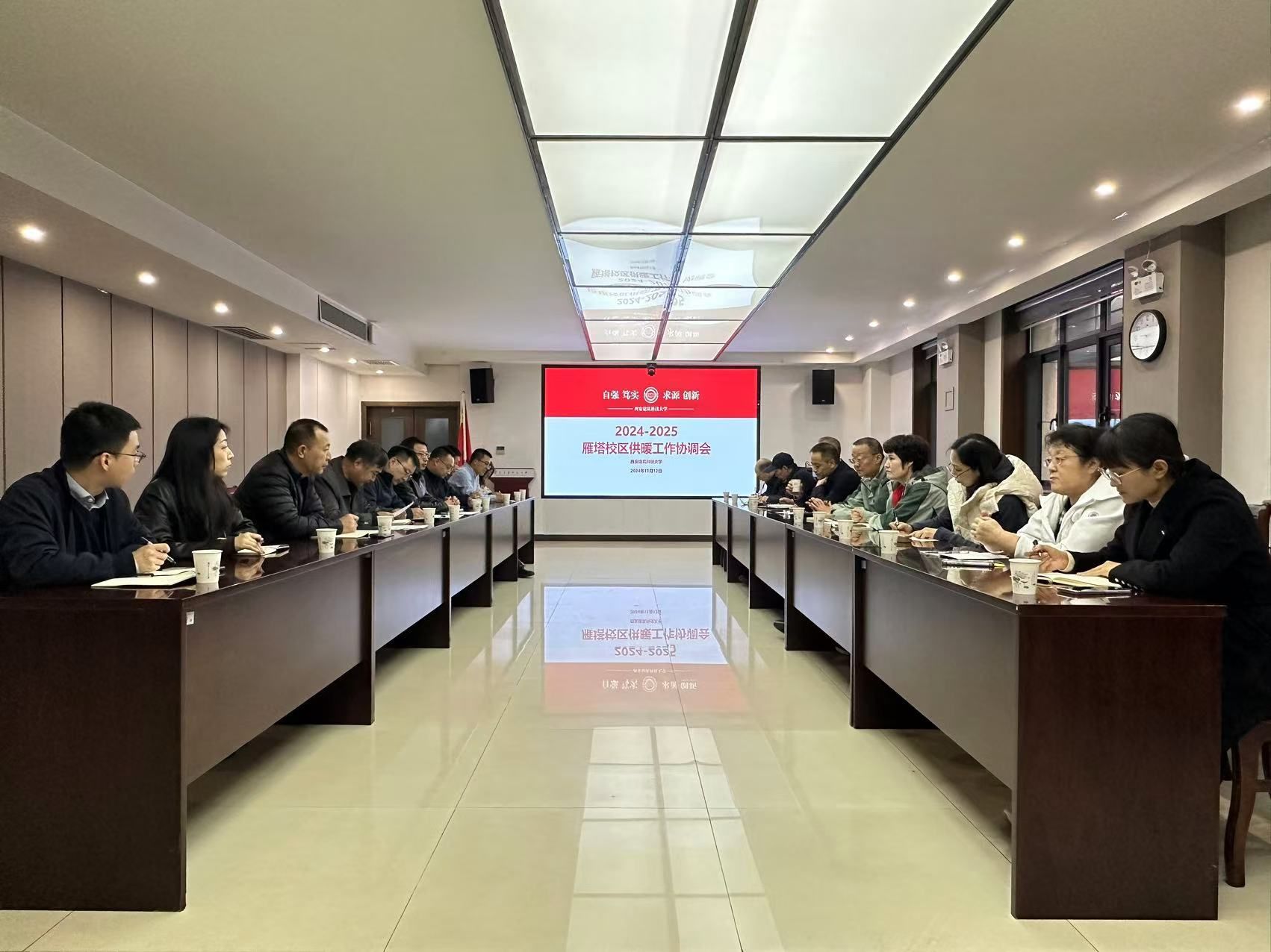 11月12日下午,总务处在行政楼负一层会议室组织召开雁塔校区2024-2025年度供暖专项工作协调会,学生处、离退休办、附属学校、西安雁东供热有限公司、后勤服务中心及各物业单位相关负责人参加会议,会议由总务处副处长程永阳主持。