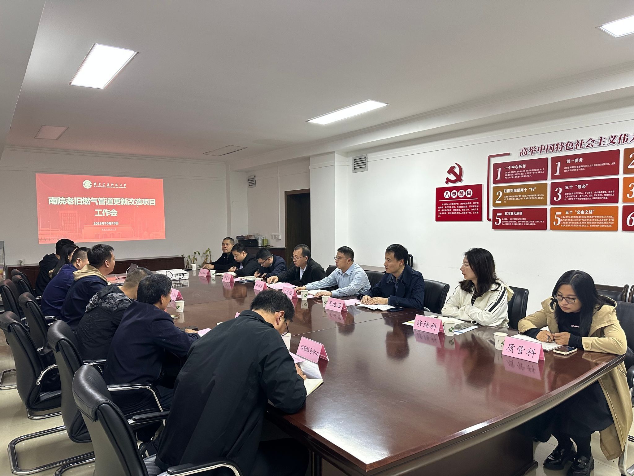 2025年10月10日下午,雁塔校区家属区燃气设施更新项目推进会在行政楼负一楼中厅会议室召开。总务处、学校社区、离退休工作办公室、后勤服务中心等部门和项目施工单位及监理单位参加会议。