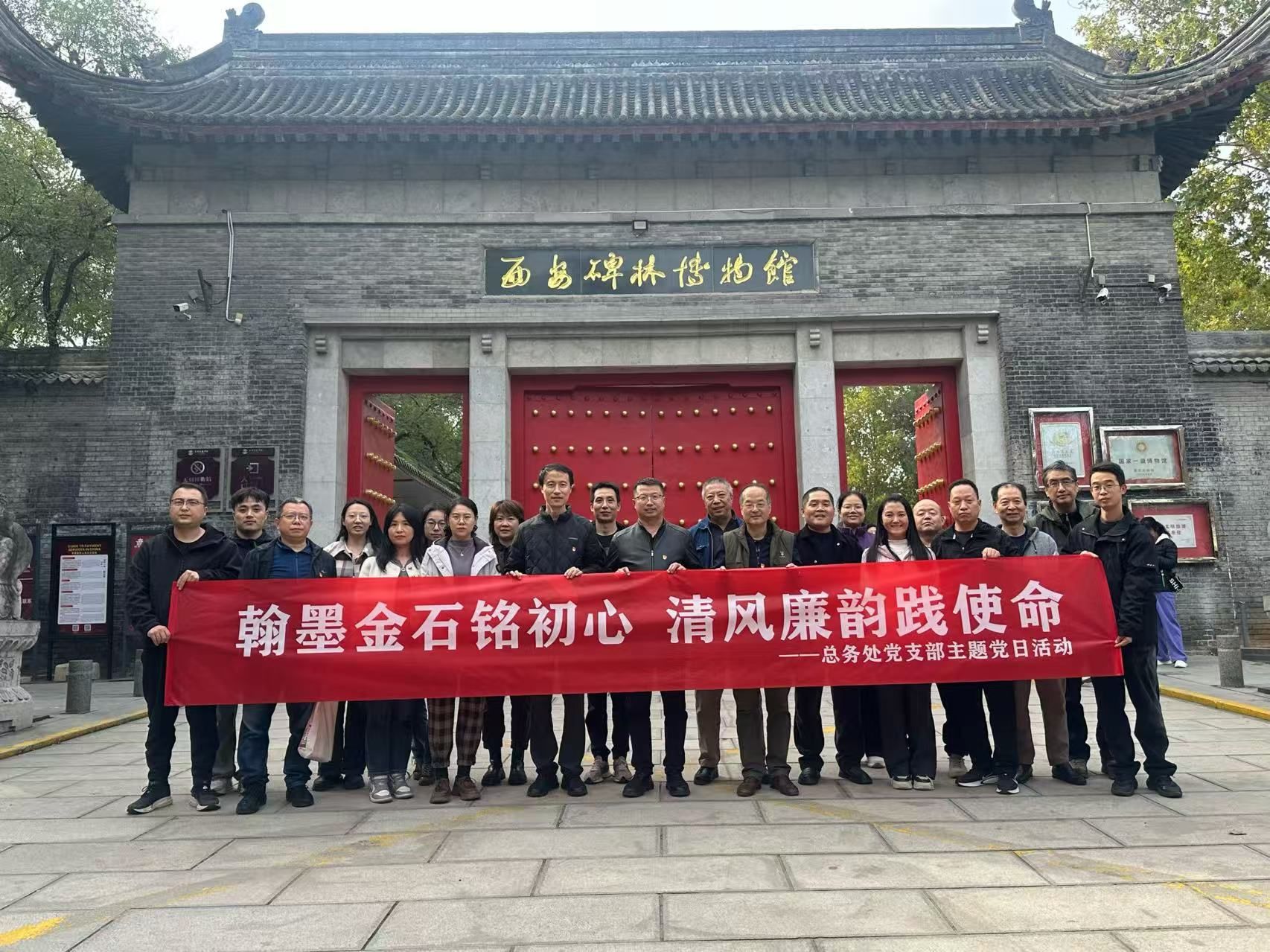 为深入推进党风廉政建设,从中华优秀传统文化中汲取精神养分,2025年10月31日,总务处党支部动力安全党小组组织全体党员前往西安碑林博物馆,开展“翰墨金石铭初心,清风廉韵践使命”主题党日活动。这场活动将书法艺术欣赏与党性修养提升相融合,让同志们在感受翰墨金石之美的同时,淬炼党性初心,筑牢廉洁防线。