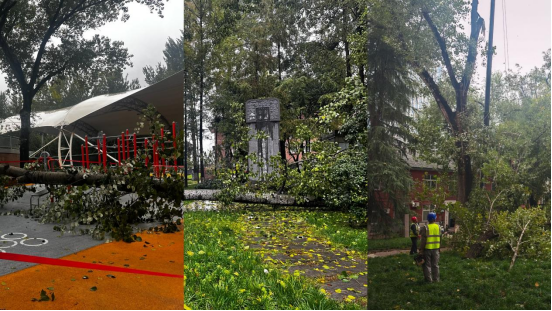 由于今秋雨水天气影响,今年我校连续发生四起杨树倒伏事件,给师生通行及校园设施安全带来潜在风险。险情发生后,总务处第一时间启动应急处置,对倒伏树木进行清理清运,同时迅速邀请专业绿化人员对全校树木开展拉网式排查。经专业评估,校内部分杨树因树龄较长,存在根系较浅、树冠过大等问题,在强对流天气中极易发生倒伏、脆断,成为亟待解决的安全隐患。