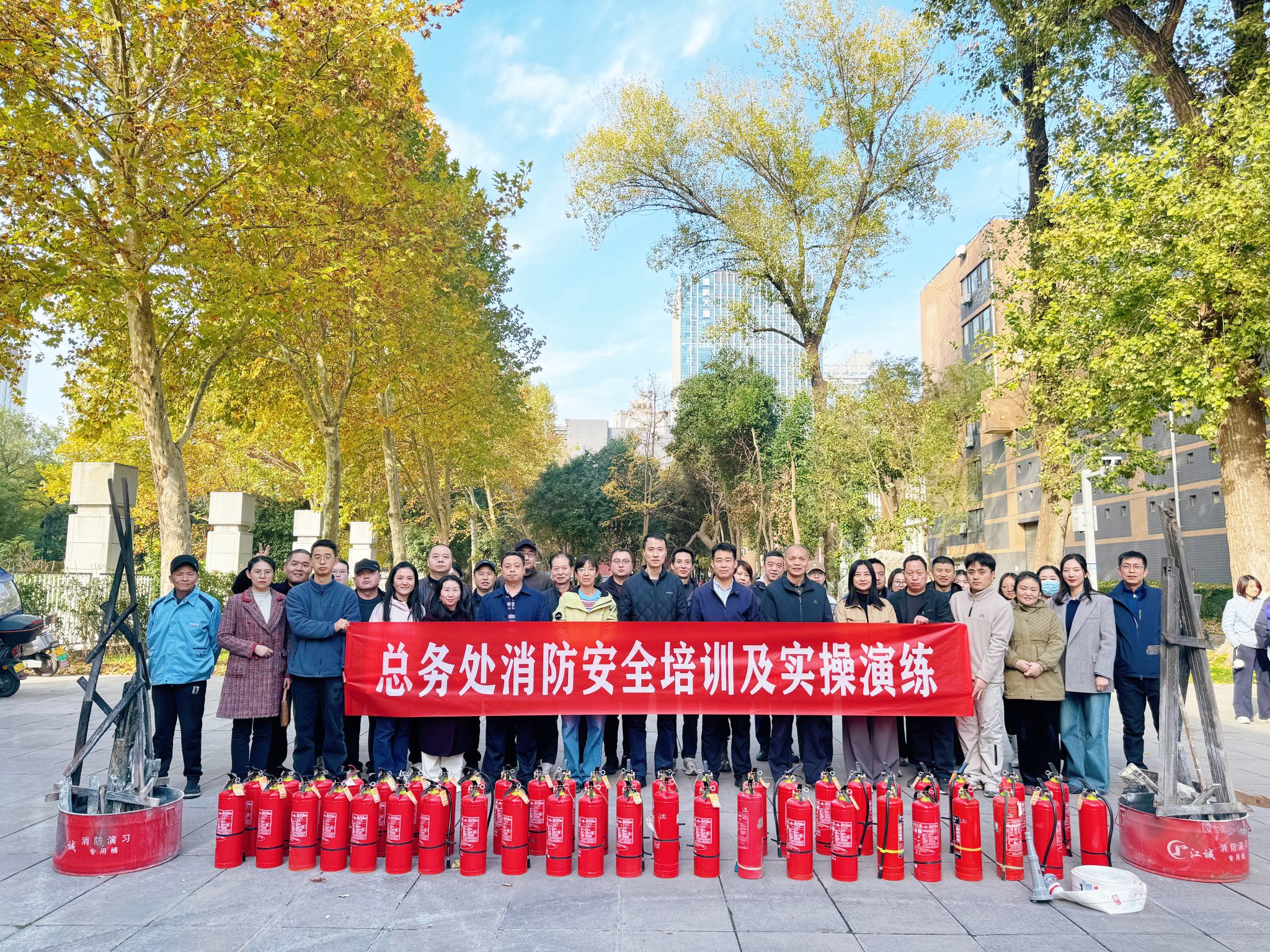为进一步强化总务处工作人员消防安全意识,着力提升初期火灾处置和自防自救能力,11月13日下午,总务处在雁塔校区西大门内北侧开展消防安全培训及实操演练活动,总务处雁塔校区工作人员及保卫处消防科相关人员参加活动。