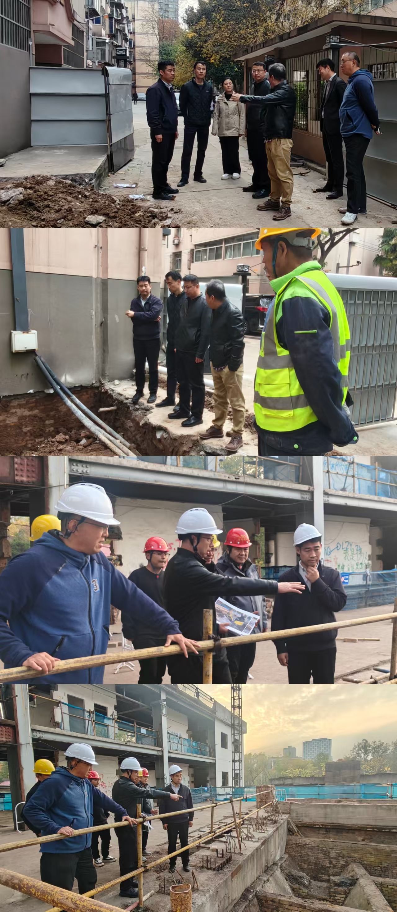 11月10日下午,总务处处长闫清波带队对“雁塔校区多层住宅电梯加建工程”及“环境学院实验楼改造项目”开展现场检查工作。