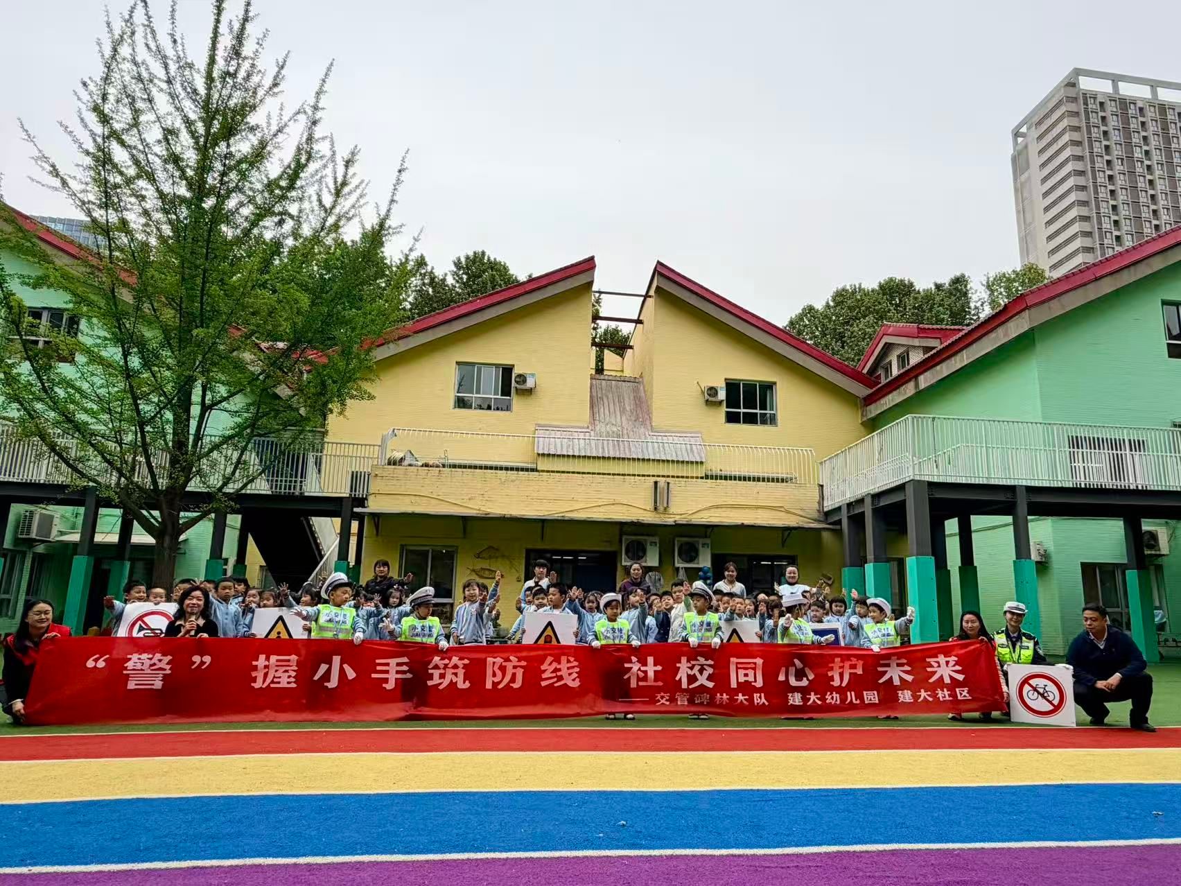 为深化交通安全“预防警务”,筑牢校园周边安全防线,将安全意识根植童心,4月20日下午,社区居委会联合交管碑林大队文艺路中队,走进建大幼儿园开展“‘警’握小手,平安‘童’行”交通安全宣教活动。