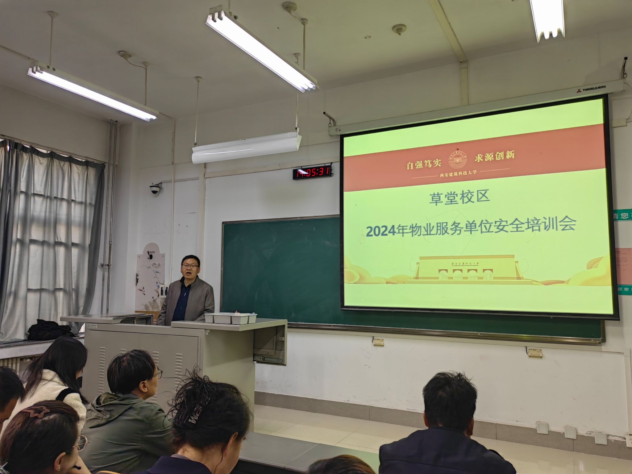 为贯彻落实安全事故预防和应急处置等工作相关要求,着力提升安全理念和应急响应能力,3月20日,后勤管理办公室组织召开物业服务单位安全培训会。草堂校区各物业服务单位主管以上工作人员50余人参加此次培训。