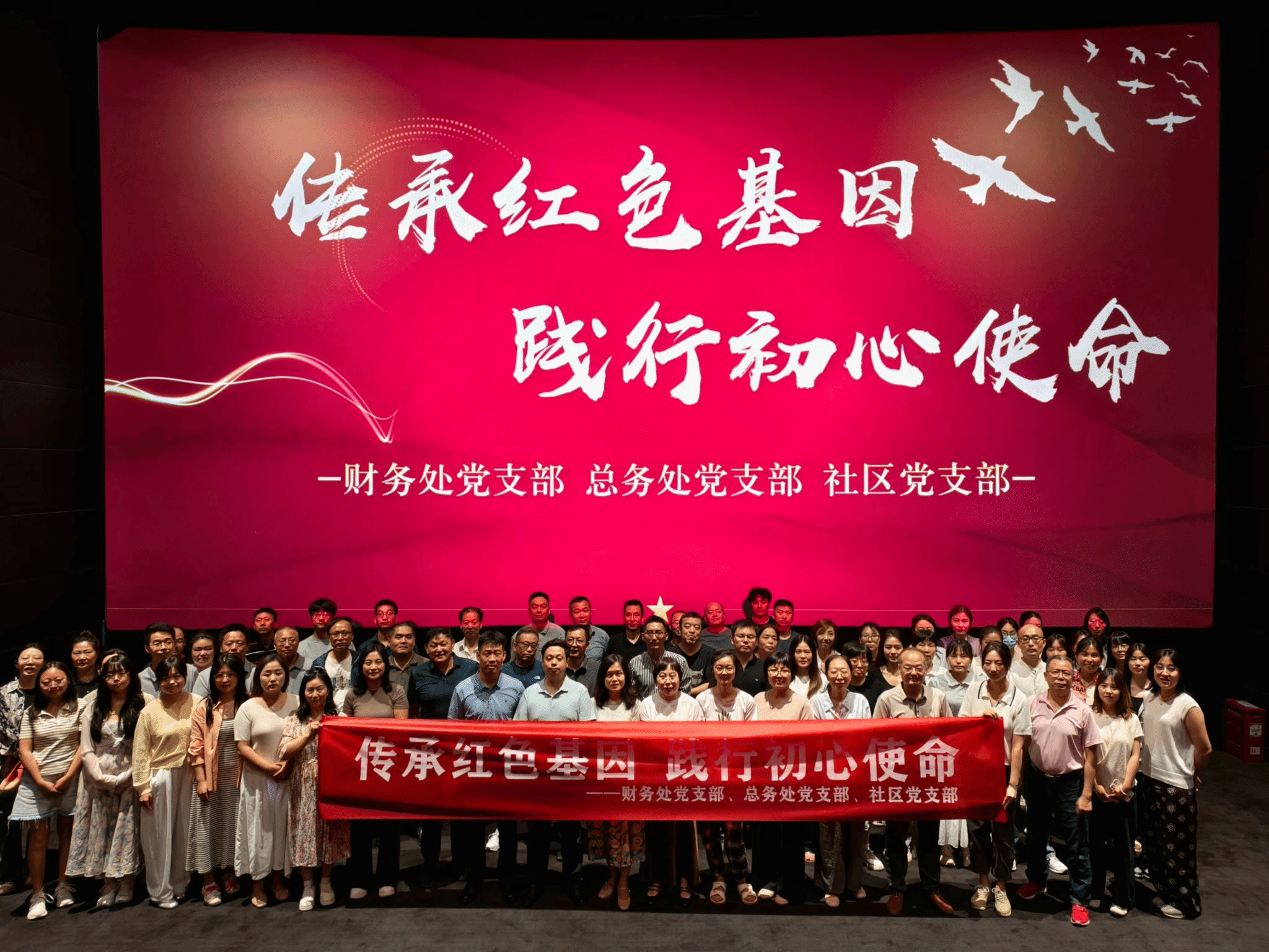 为庆祝中国共产党成立104周年,7月2日,总务处党支部、社区党支部联合财务处党支部组织党员、积极分子共同观看红色主题电影《天宝》,以光影为媒,传承红色基因,汲取前行力量。