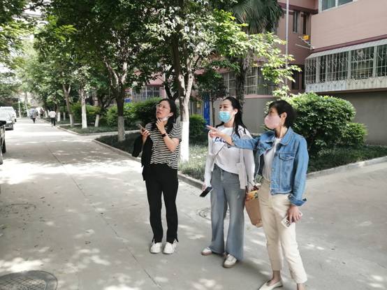 西安市自然资源和规划局碑林分局有关负责人来到雁塔校区南院,实地查看19号住宅楼地理位置和建筑情况,与设计师深入交流,详细了解加装方案及技术参数,表示尽快研究审核相关资料。