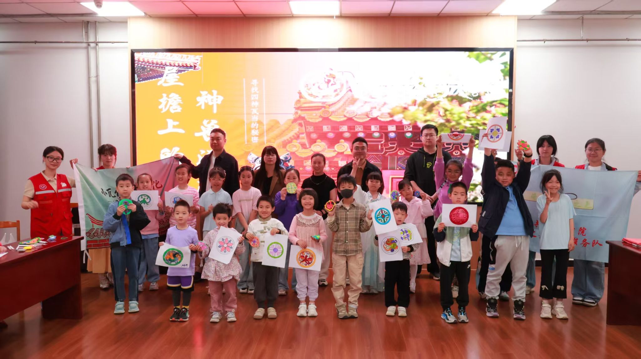 活动现场,公管学院学生志愿者充分发挥专业优势,采用趣味讲解与科普视频播放相结合的形式,搭配互动问答环节,向参与活动的青少年生动普及四神瓦当相关文化知识。在后续的手工实践环节,青少年亲手参与瓦当涂色、黏土创作,在实践操作中深入了解传统建筑文化,真切体悟古代工匠的精湛技艺与工匠精神。